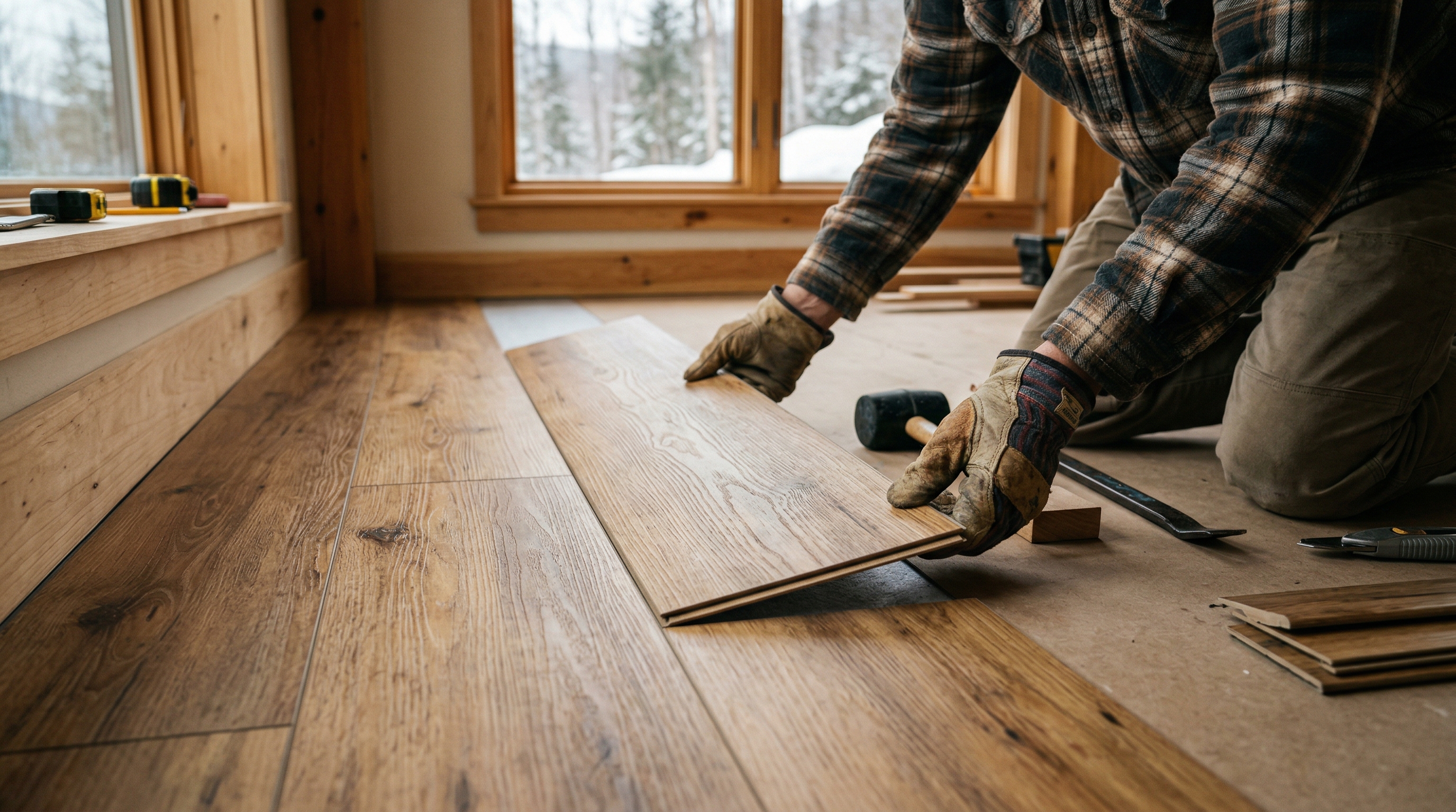 This is the big one. Vermont homes deal with wild humidity swings — 30% relative humidity in winter when the woodstove is cranking, 70%+ in August. That cycle does things to flooring.